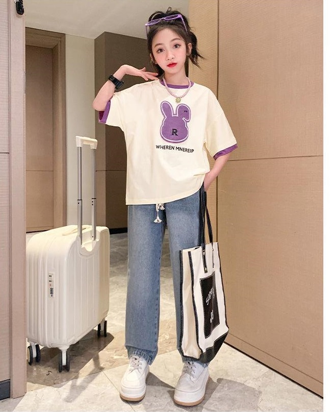 – طقم بناتى قطعتين مستورد مكون من تيشرت وبنطلون.