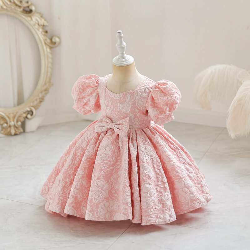 – يتميز هذا الفستان بتصميم مميز مما يمنح الطفلة مظهرًا يشبه الأميرات .