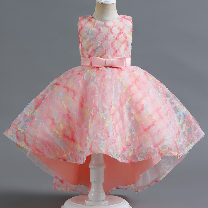 – يتميز هذا الفستان بتصميم مميز مما يمنح الطفلة مظهرًا يشبه الأميرات .