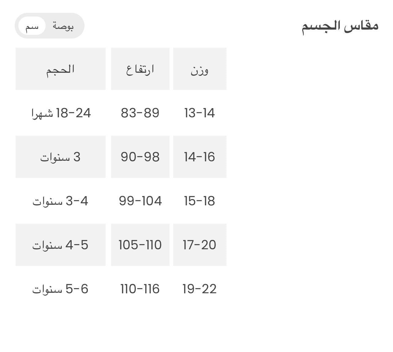 جداول المقاسات مرفقة في وصف المنتج وفي كتالوج الصور الخاصة بالمنتج الرجاء مراجعة جداول المقاسات بعناية قبل الطلب -